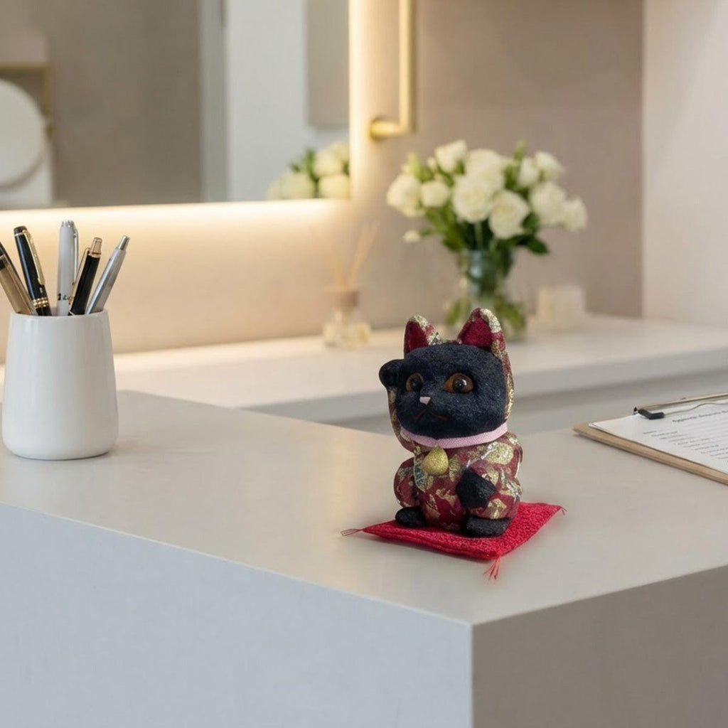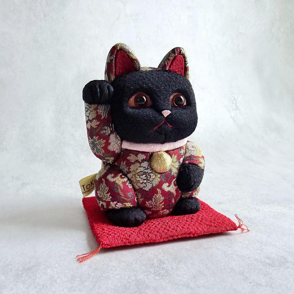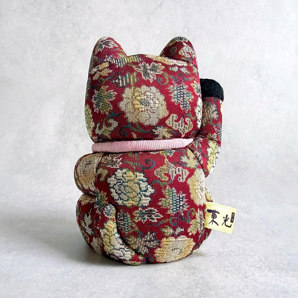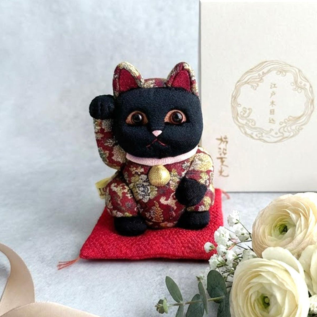 京都西陣の「名物裂」と手作業による木目込みで仕上げた、かわいらしくも美しい招き猫。繁栄の意味を持つ右手を挙げた猫は、左右対称の精巧な作りで福を呼び寄せます。モダンな柄をまといながらも、手のひらサイズでどのような空間にマッチするのもポイント。店舗やオフィス、自宅などにさりげなく飾り、伝統美を堪能できます。