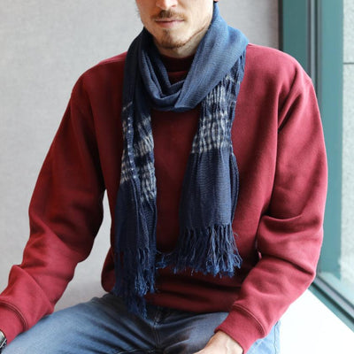 インディゴの葉、果糖、消石灰、木灰など天然素材のみで染められたストール