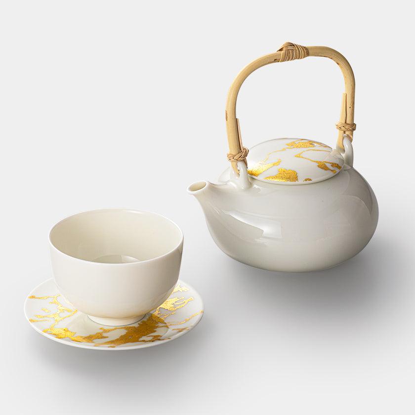 金箔のマーブル (大理石)デザインで仕上げられた、上品な茶器セット!
