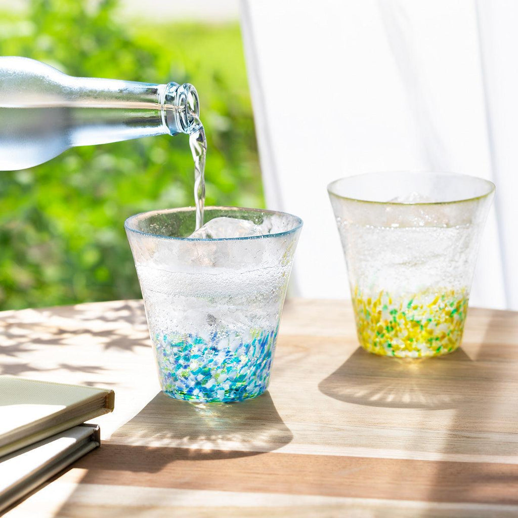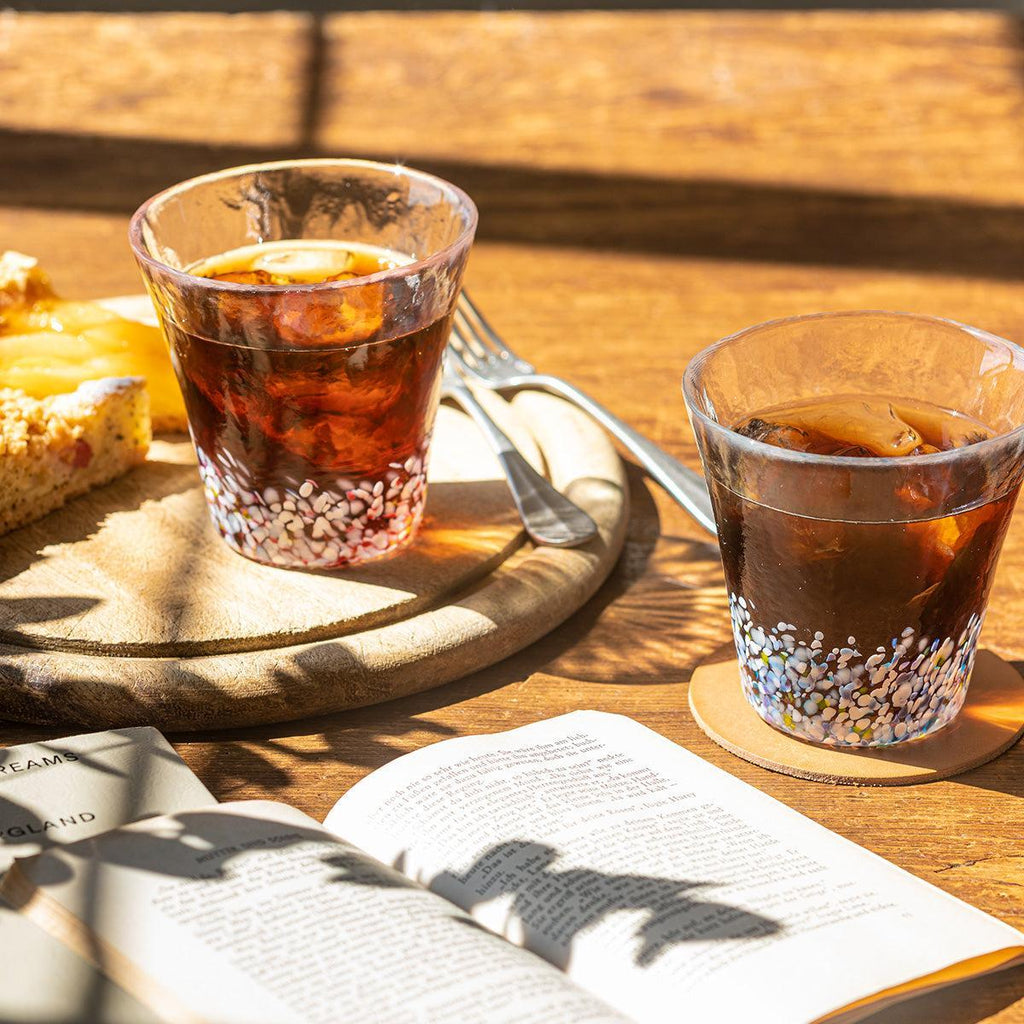 手に収まるやわらかな形で使い勝手がよく、氷越しに揺れる色が涼を添え、四季の景色が一杯の時間を小さな旅へと誘います。