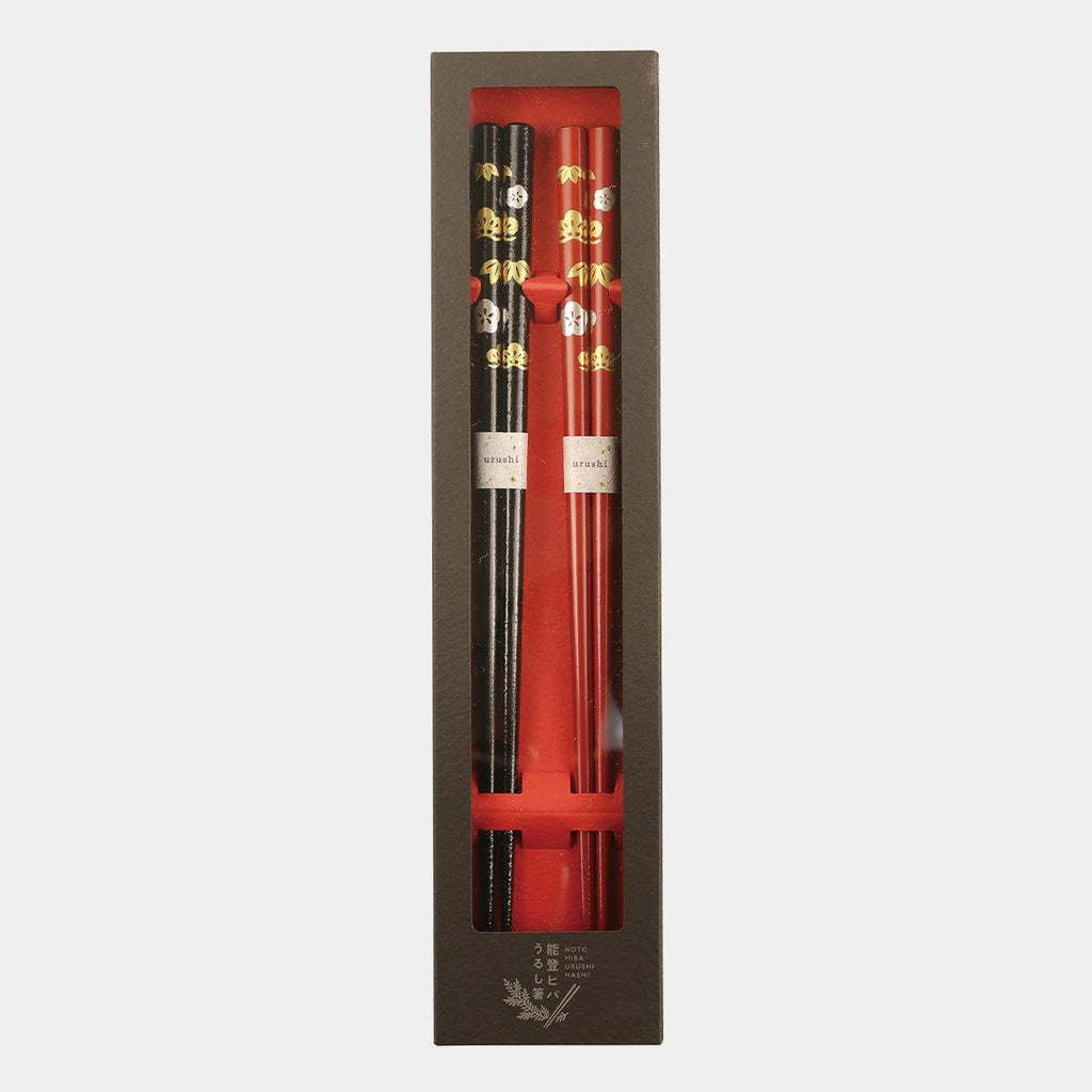 能登ヒバの軽やかな木地にあしらわれたうるし箸は、抗菌性に優れ、やさしい口当たりも魅力です。