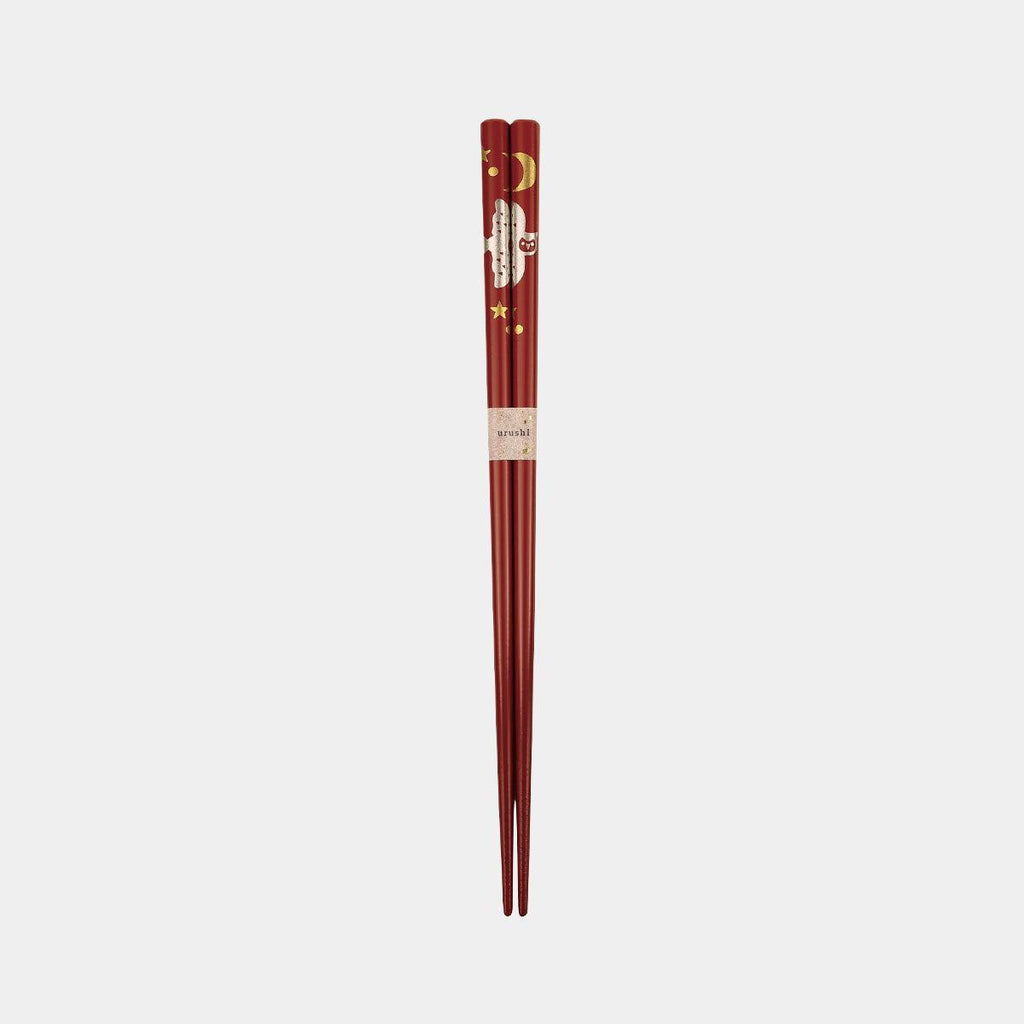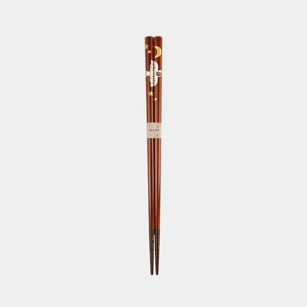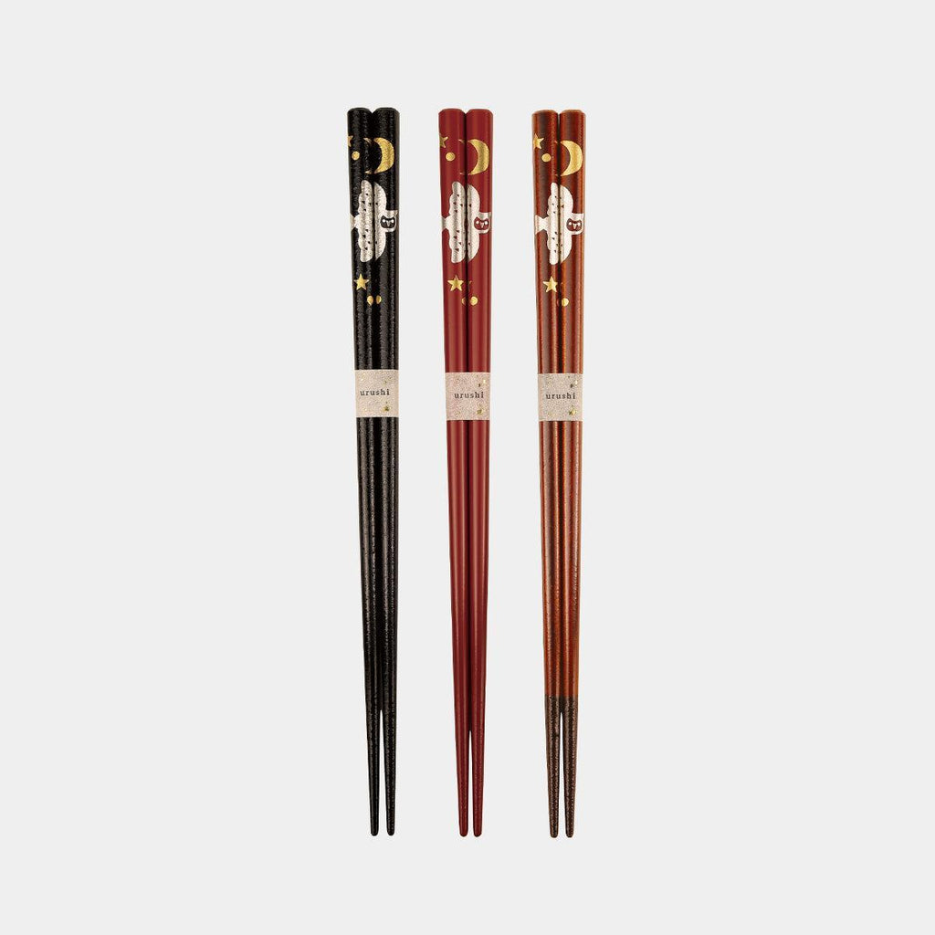 「不苦労」「福来郎」に通じる吉祥文様・ふくろうを、落ち着いた色合いと艶やかな漆で端正に表現。