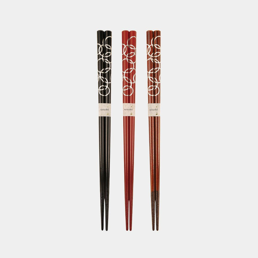 黒・朱・茶の三色展開で、食卓にさりげない華やぎを添えます。