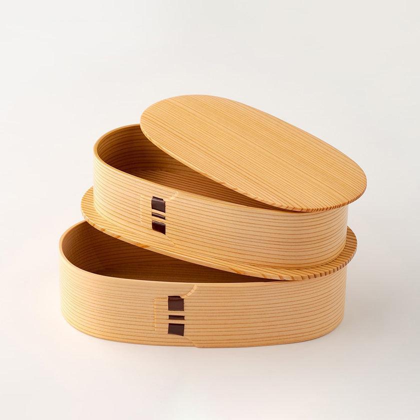 秋田杉のさわやかな香りと木目の美しさを生かした伝統工芸品の小判型弁当箱です。
