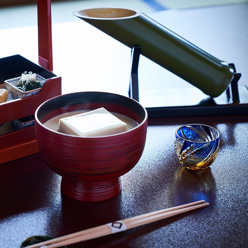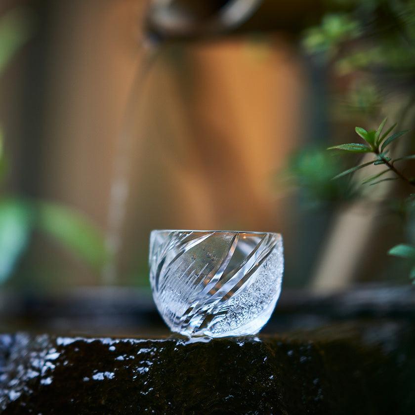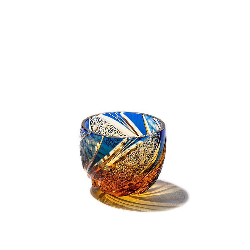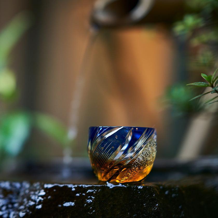 夜空に煌く流星群を表現しました。伝統紋様の「菊繋ぎ」を渦巻くように配した曲線美のカットにより更なる輝きを味わえる逸品です。