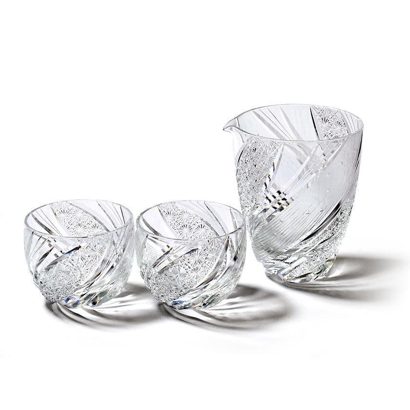 夜空に煌く流星群を表現しました。伝統紋様の「菊繋ぎ」を渦巻くように配した曲線美のカットにより更なる輝きを味わえる逸品です。