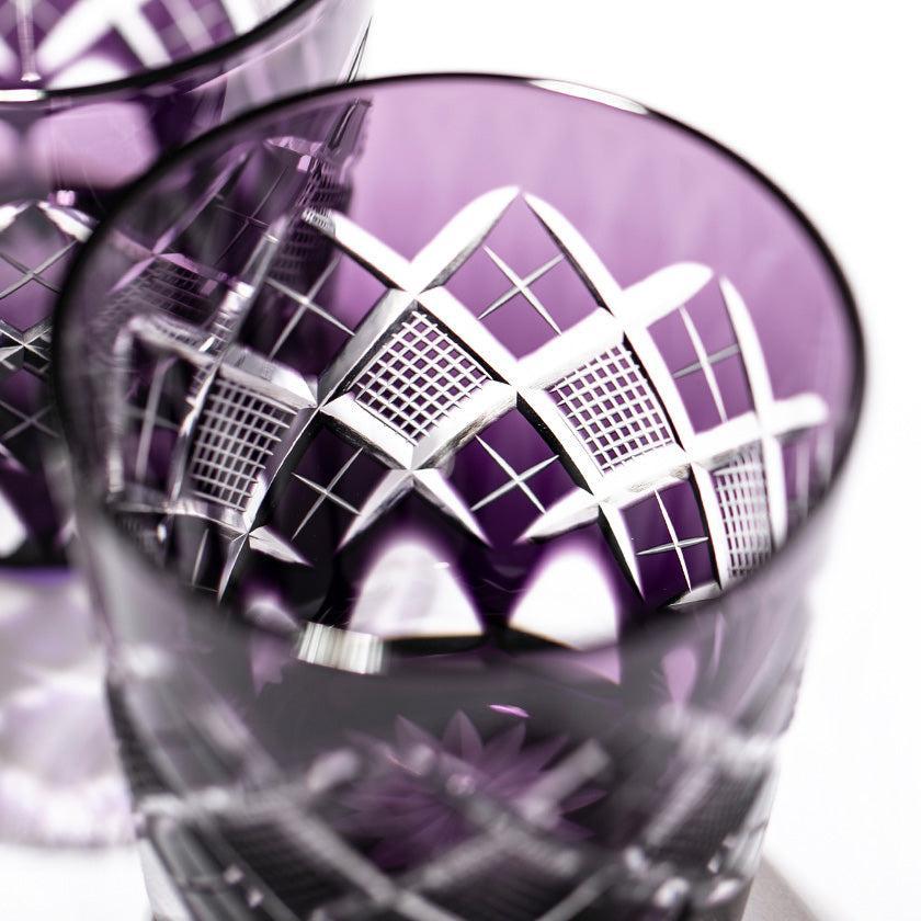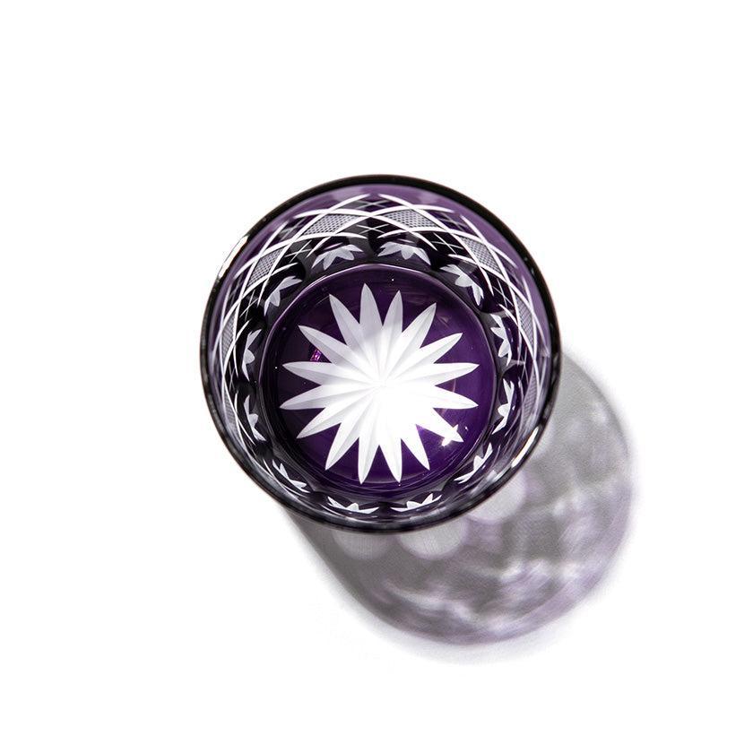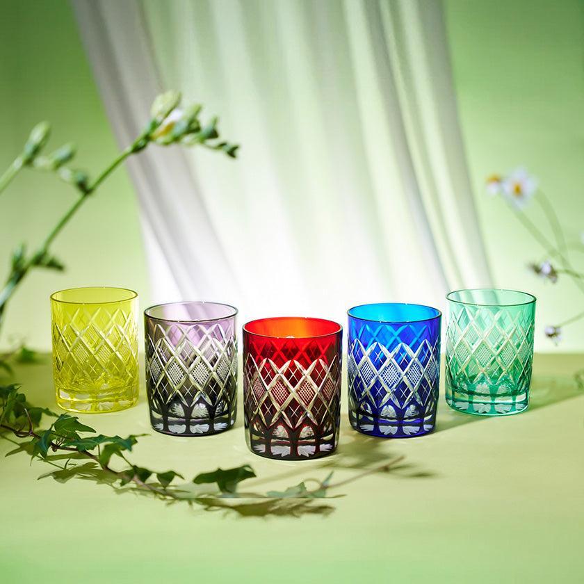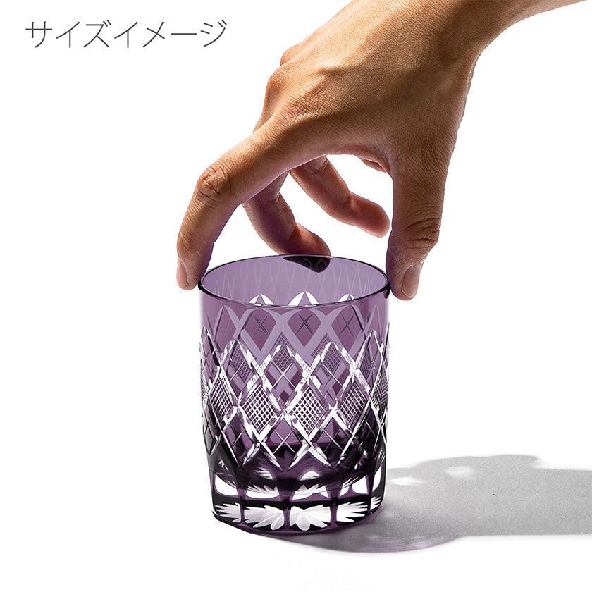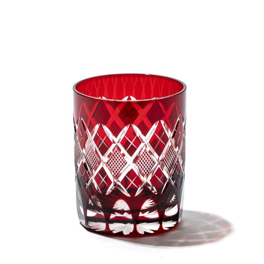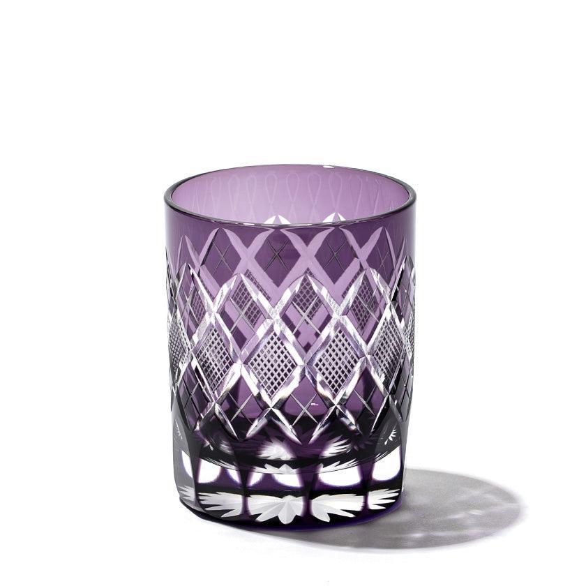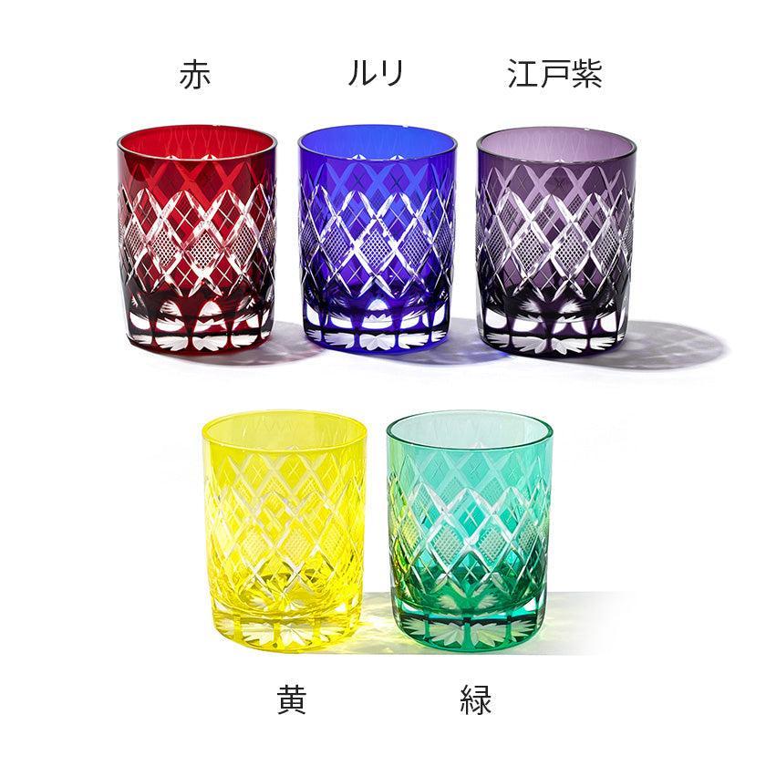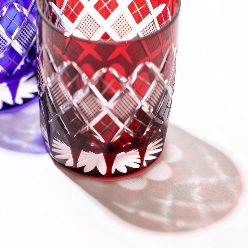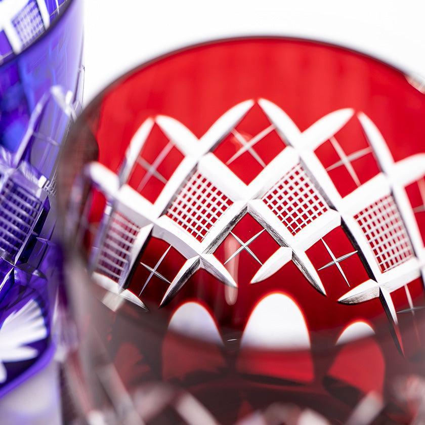 江戸切子の代表的な紋様「矢来魚子(やらいななこ)」紋。竹や丸太を互い違いに組んだ形状の事を指し、 「物事の基礎を作る」「基盤を固める」とされる矢来と 魚のうろこを意味し、 数の多いという意味合いから 多産・豊かさを表す魚子を組み合わせた 大変縁起の良い伝統紋様の一つです。