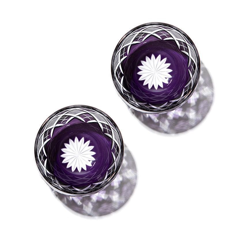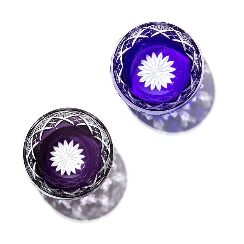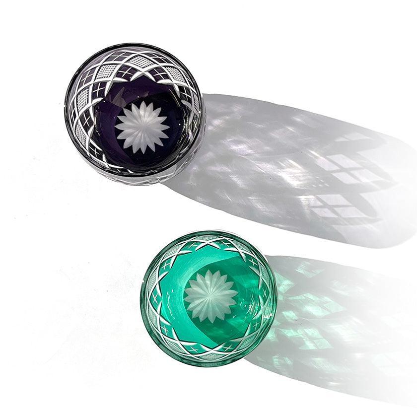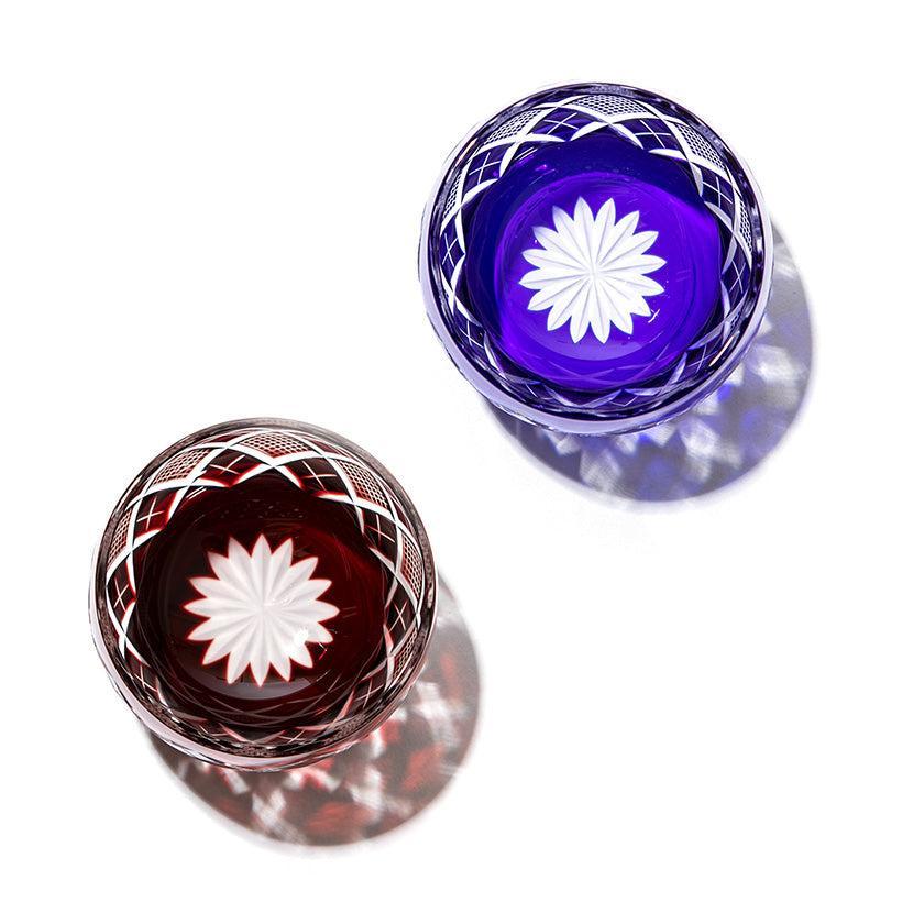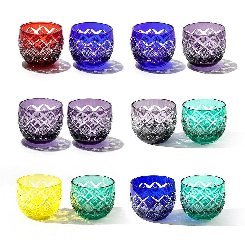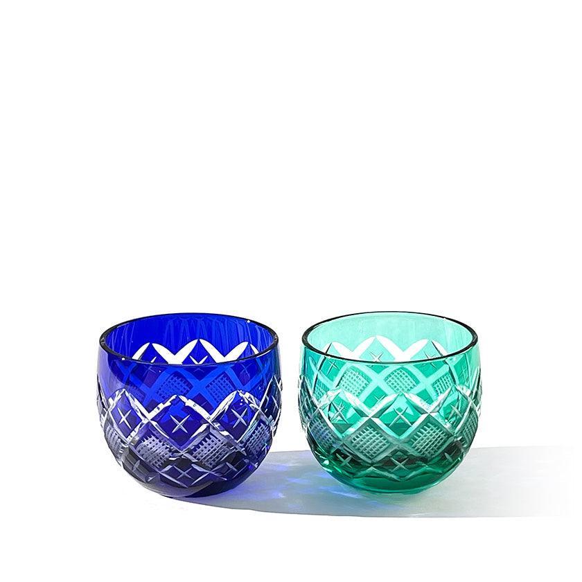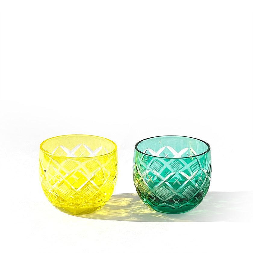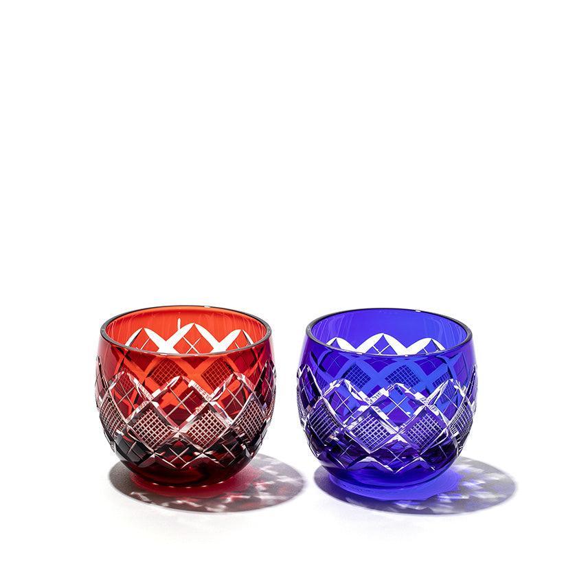 江戸切子の代表的な紋様「矢来魚子(やらいななこ)」紋。竹や丸太を互い違いに組んだ形状の事を指し、 「物事の基礎を作る」「基盤を固める」とされる矢来と 魚のうろこを意味し、 数の多いという意味合いから 多産・豊かさを表す魚子を組み合わせた 大変縁起の良い伝統紋様の一つです。