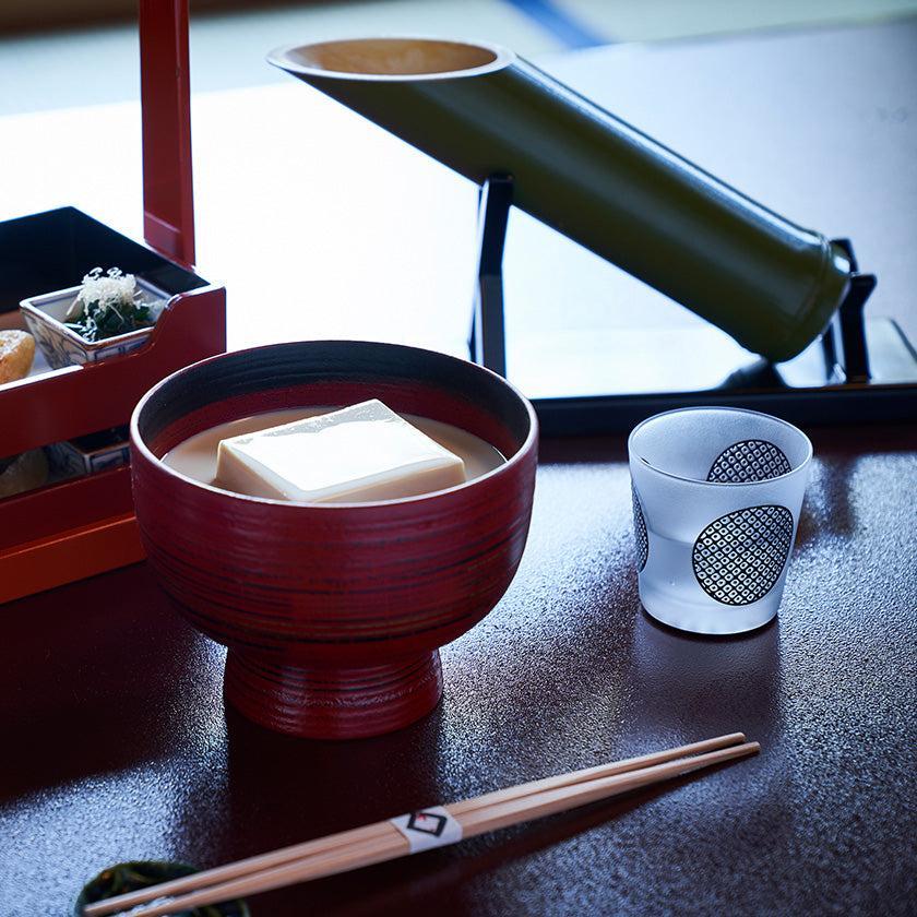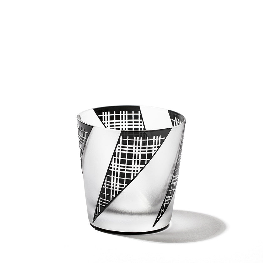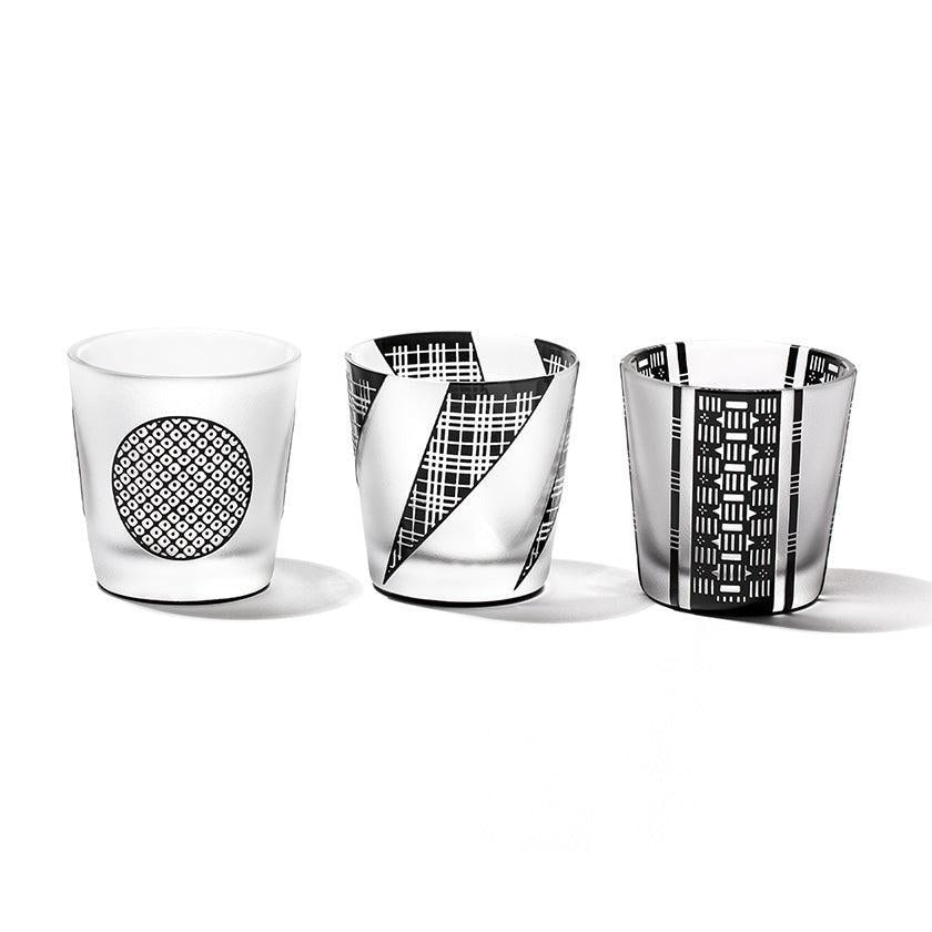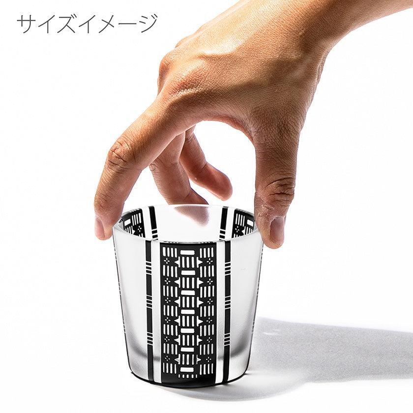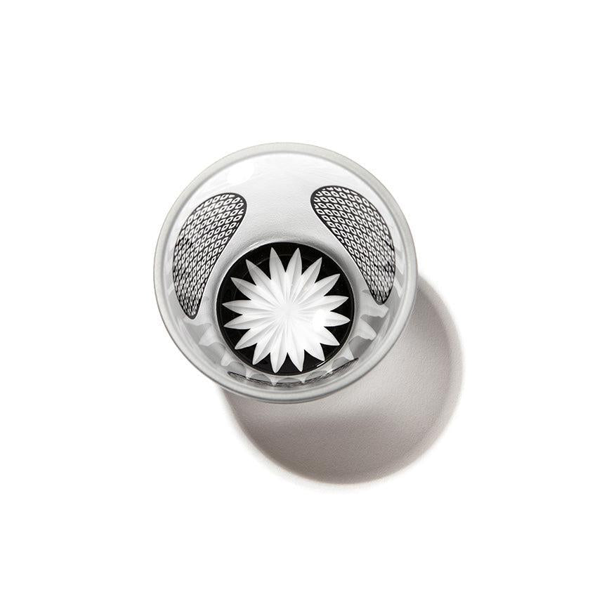黒小紋は 熟練の職人が手吹きで造り上げた二層構造のガラス器へ 伝統的な江戸小紋「鹿の子」「三筋格子」「割付柄」を彫刻した作品です。江戸小紋の粋で繊細な紋様と落ち着いた黒被せガラスの組み合わせが美しいシリーズです。