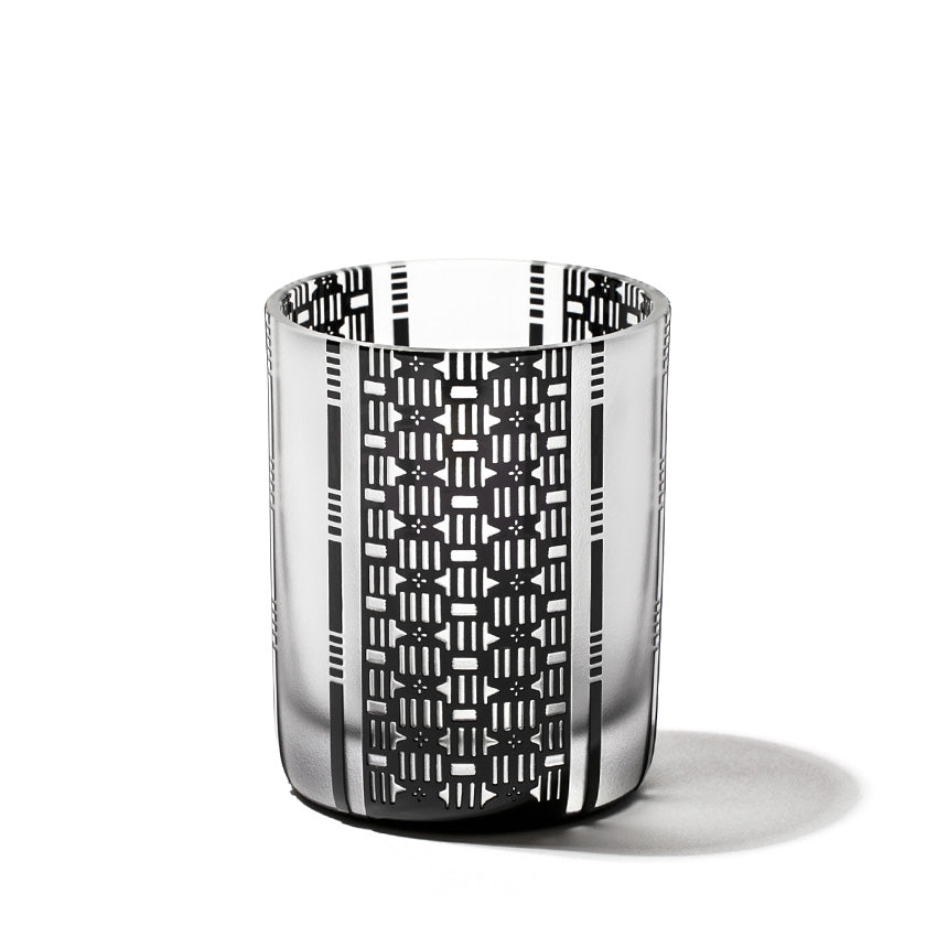 黒小紋は 熟練の職人が手吹きで造り上げた二層構造のガラス器へ 伝統的な江戸小紋「鹿の子」「割付柄」「麻ノ葉」「豆絞り」「七宝」「竹の節」を彫刻した作品です。江戸小紋の粋で繊細な紋様と落ち着いた黒被せガラスの組み合わせが美しいシリーズです。