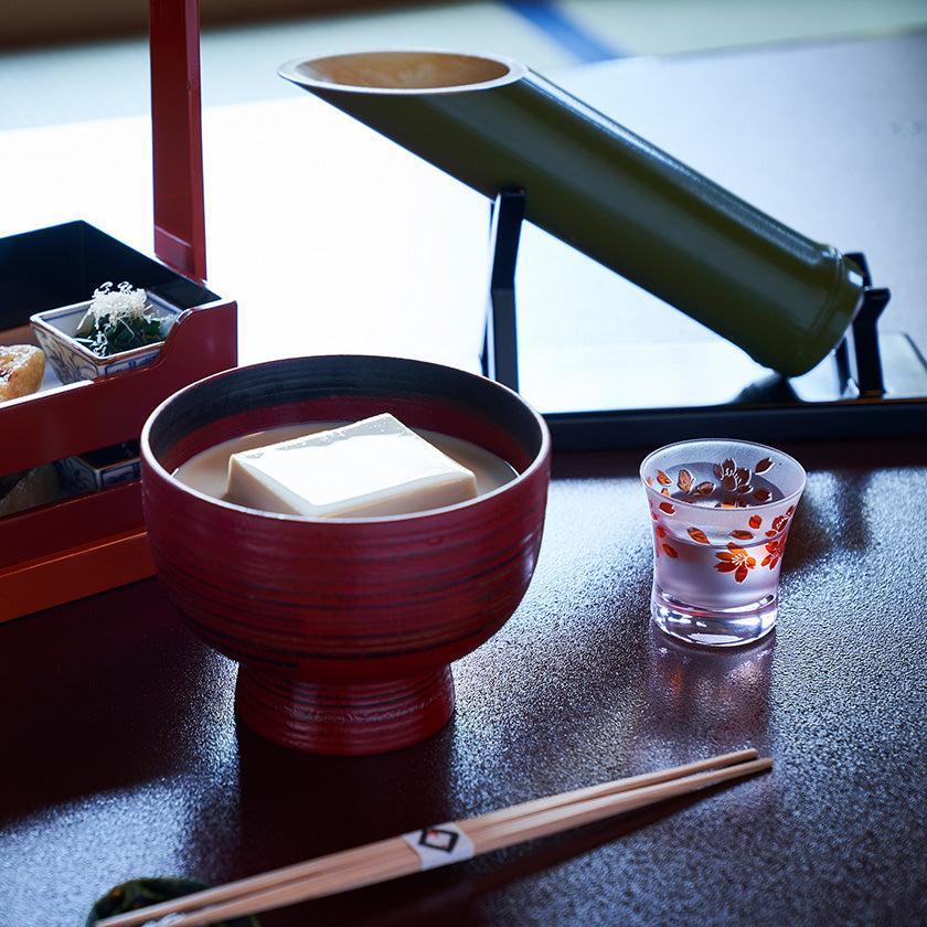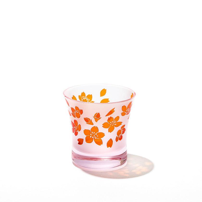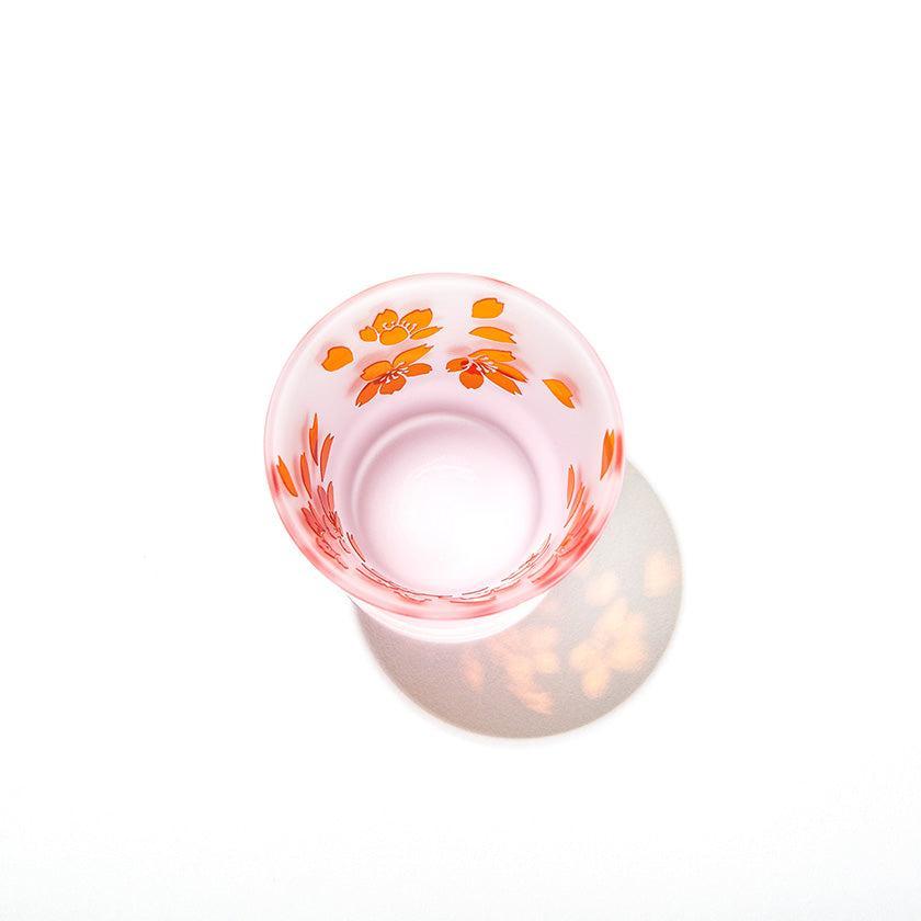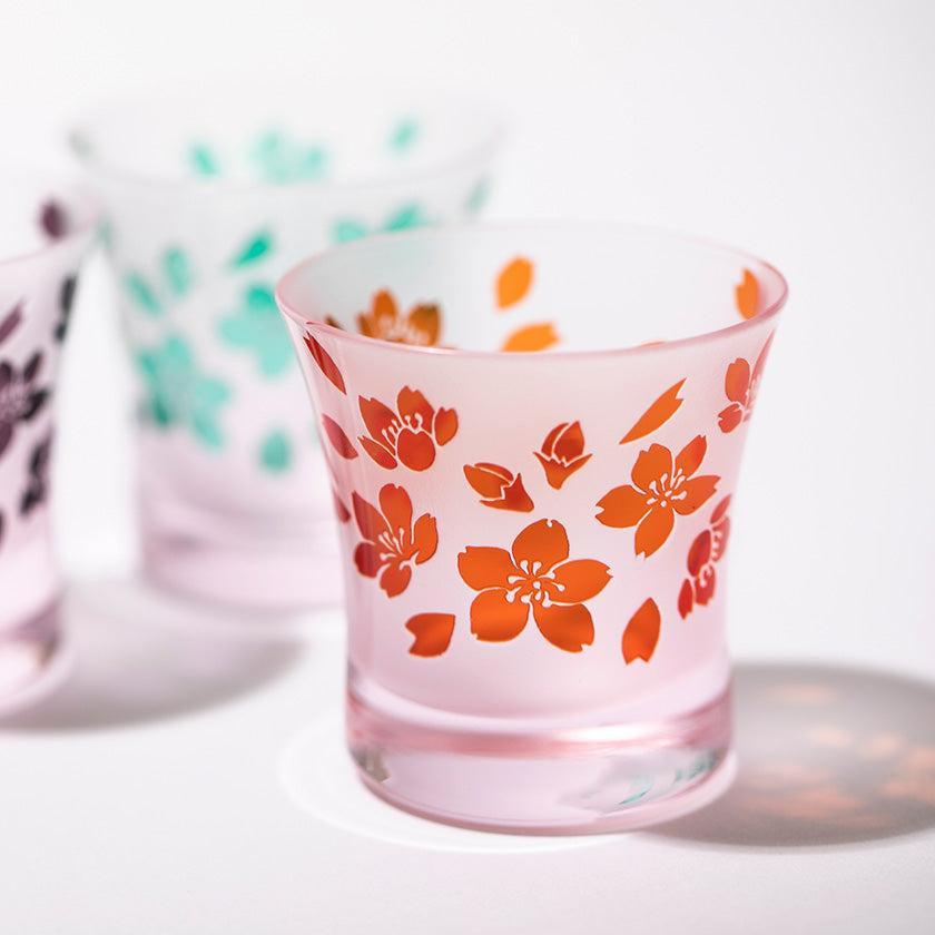 二層の色被せガラスを一つ一つ手吹きにて作り、その器に彫刻を手作業で施し、二色のコントラストで図柄を表現しています。ピンク色が華やかな桜のシリーズ。 優しい色味と使い易さを大切にした形の器は性別・年齢を問わずお楽しみいただけます。