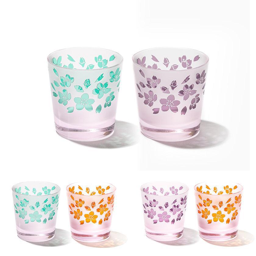 二層の色被せガラスを一つ一つ手吹きにて作り、その器に彫刻を手作業で施し、二色のコントラストで図柄を表現しています。ピンク色が華やかな桜のシリーズ。 優しい色味と使い易さを大切にした形の器は性別・年齢を問わずお楽しみいただけます。